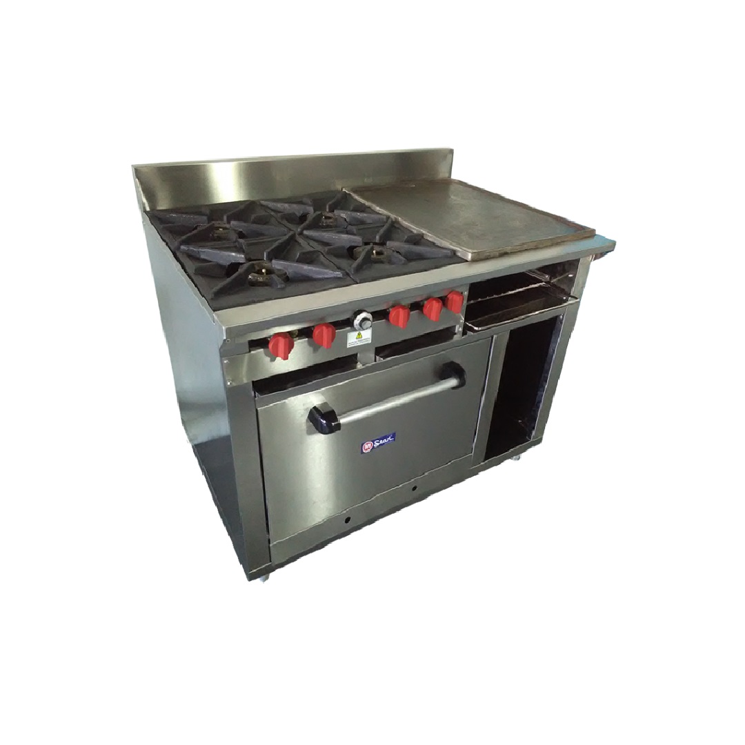 Cocina Industrial de 4 hornillas con horno en acero inoxidable y estructura en galvanizado Mstar