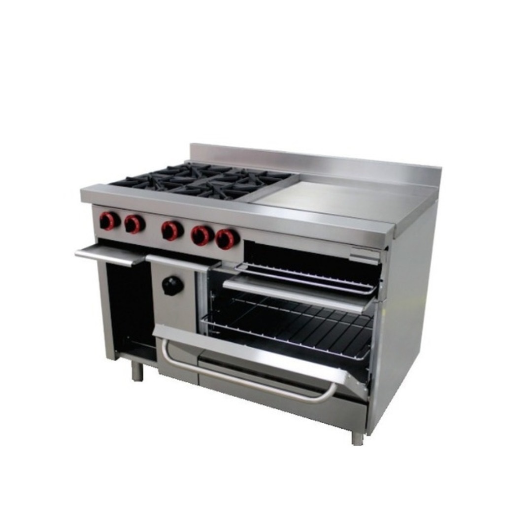Cocina Industrial 4 Hornillas Múltiples Funciones Acero Inox. Iboia (Hornillas, Plancha, Horno y Gratinador)