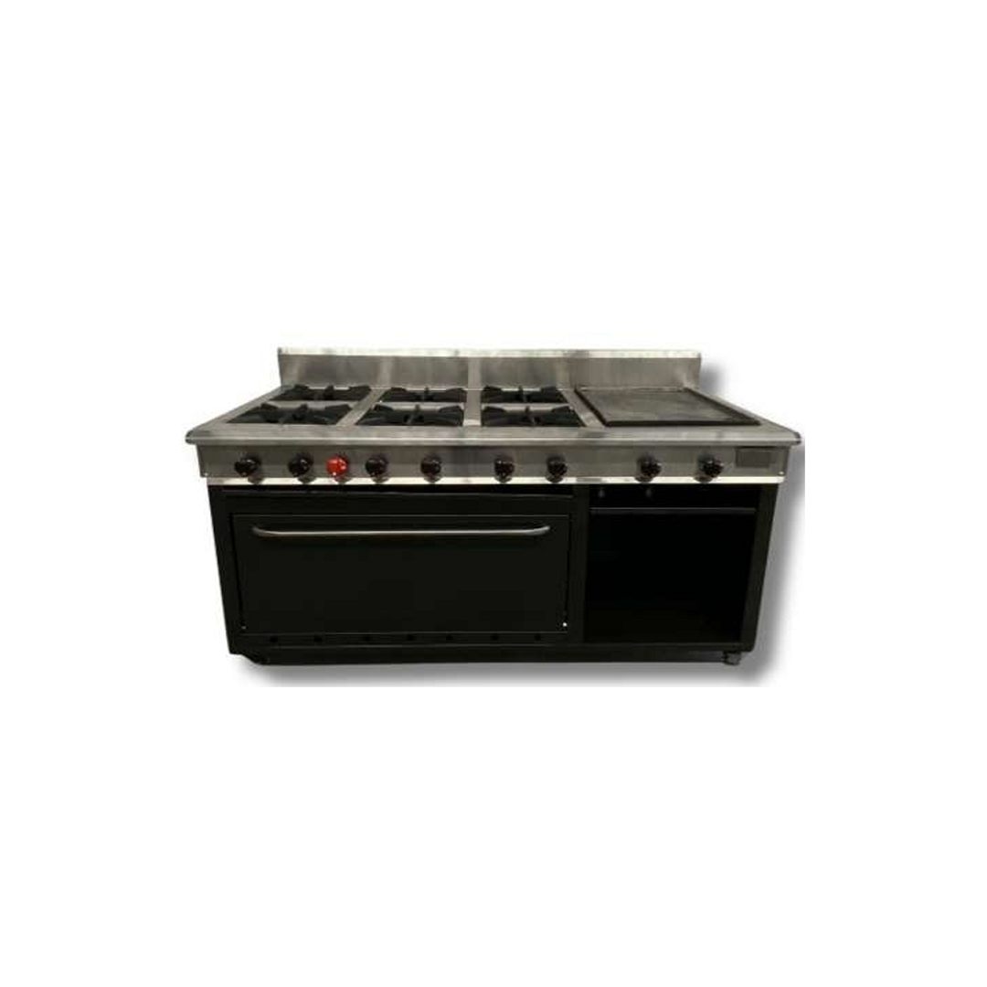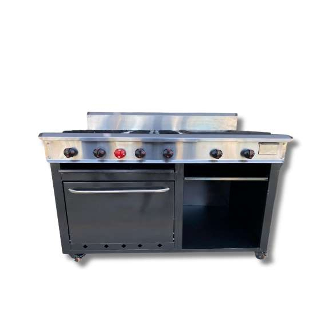 Cocina Industrial a Gas 4 Hornillas Multiples Funciones en Hierro MA (Plancha, Horno y Gratinador)