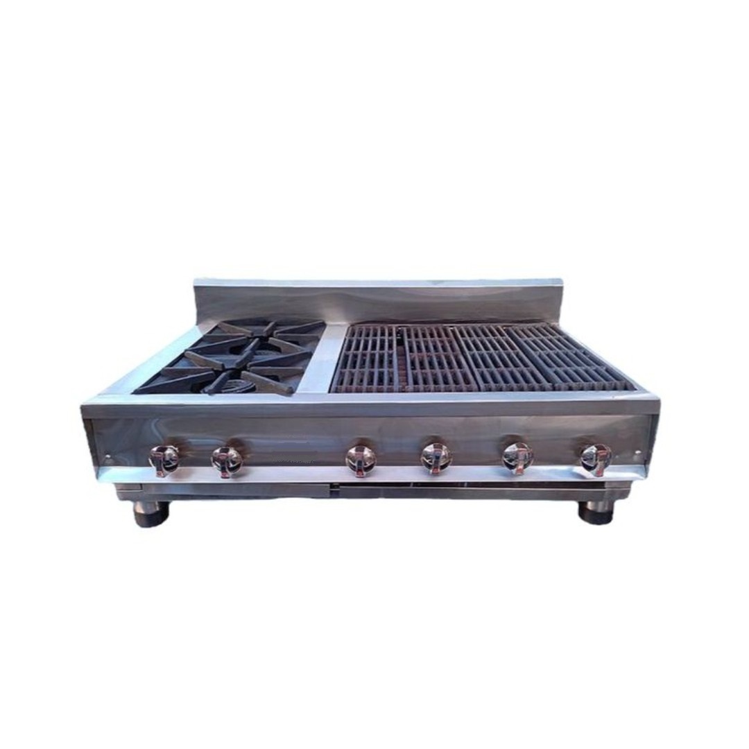 Descripción: Grill a gas con frente y respaldar en acero inoxidable 304-4. Diseñada para ser utilizada en cocinas de restaurantes y otros lugares que se relacionen con la cocción.